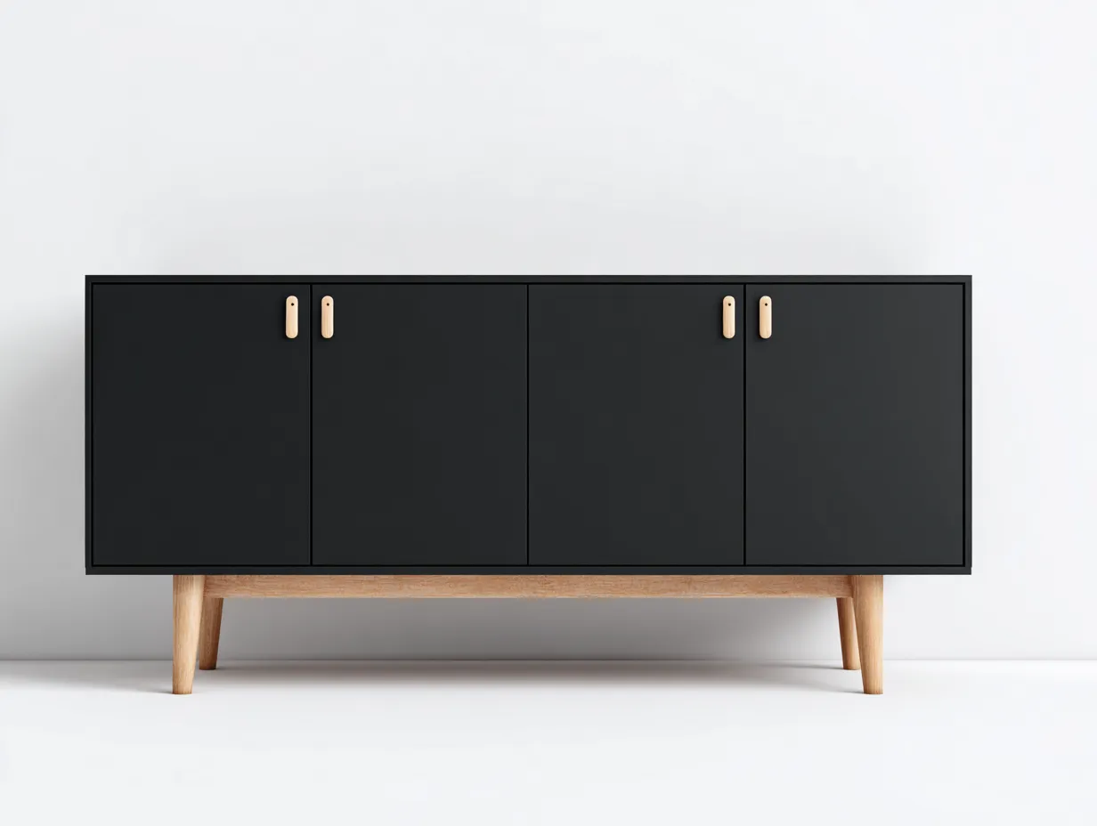 Dielenschränke-Massivholz-Metall-178x45x79 cm-Schwarz-Modern